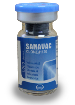 SANAVAC CLONE/H120 adalah vaksin aktif kering beku yang mengandung virus aktif Newcastle Disease, strain clone dan Infectious Bronchitis, strain H120.