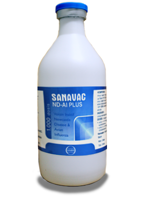 SANAVAC ND-AI PLUS adalah vaksin inaktif dalam bentuk emulsi yang dibuat dari virus AI subtipe H5N1, clade 2.3.2 dan virus ND.