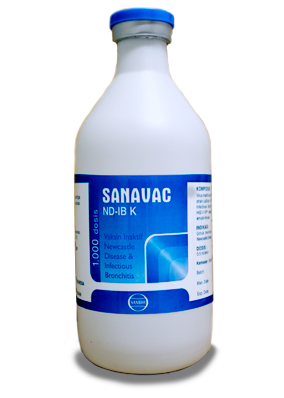 Setiap SANAVAC ND IB K mengandung virus ND inaktif strain LaSota dan Infectious Bronchitis strain H52.