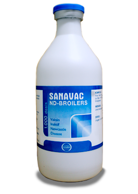 Setiap SANAVAC ND K mengandung virus ND inaktif strain.